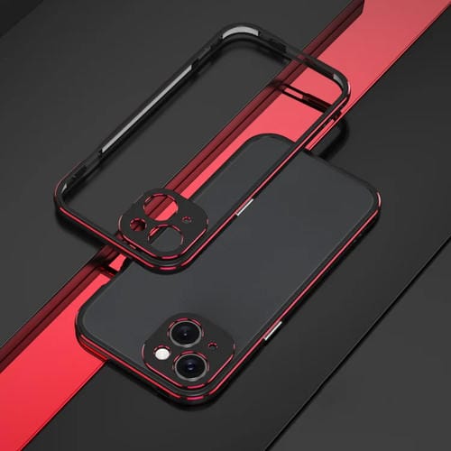For iPhone 15 Plus Aurora Series Lens Protector + Metal Frame Phone Case (Black Red)