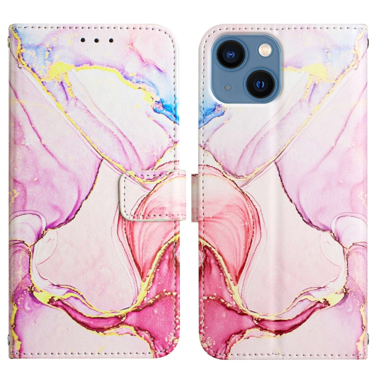 Funda de teléfono iPhone 15 Plus Pt003 con tapa de cuero y patrón de mármol (Oro Rosa)