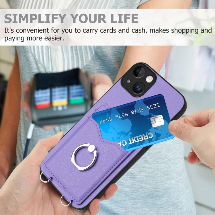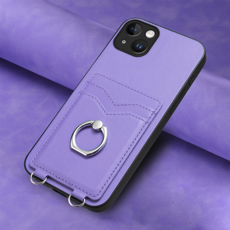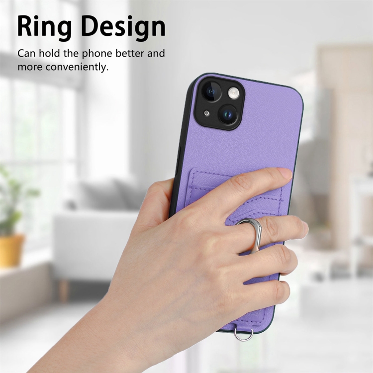 Estuche para Teléfono iPhone 15 Plus R20 con Soporte para Tarjeta y Anillo (Púrpura)