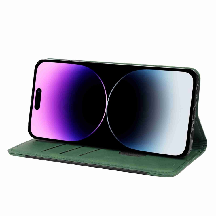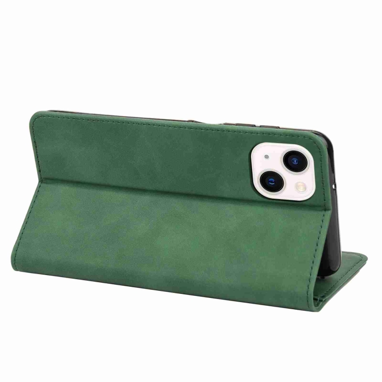 Funda para Teléfono iPhone 15 Plus Skin Feel Empalme Cuero (Verde)
