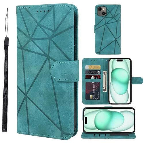 Funda para iPhone 15 Plus Skin Feel Cuero con Líneas Geométricas (Verde)