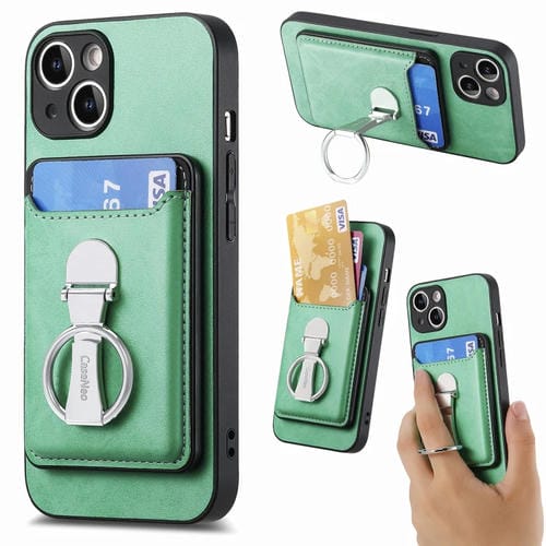 Funda para iPhone 15 Plus Skin Feel Ring Holder Wallet Magnética (Verde)