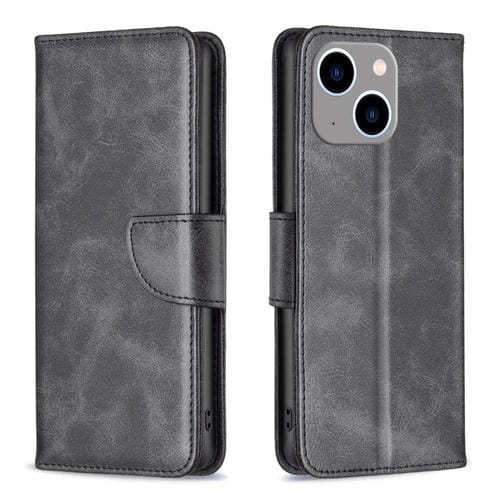 Funda para iPhone 15 Plus Textura Piel de Cordero Cuero con Tapa (Negro)