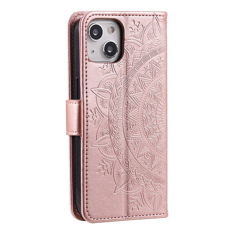 Estuche para teléfono iPhone 15 Plus Totem Flower Cuero en relieve (Oro Rosa)