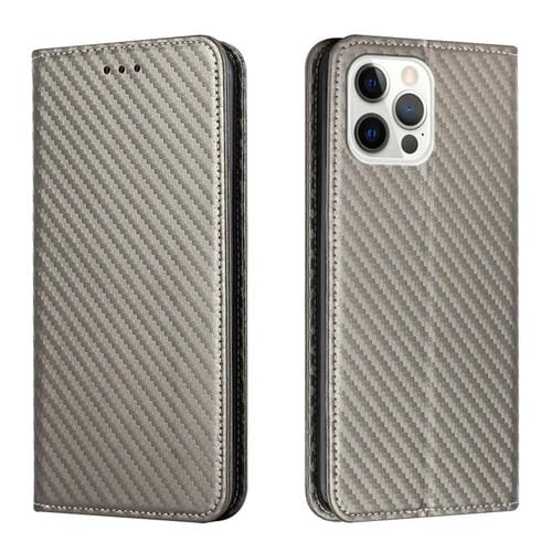 For iPhone 15 Pro Carbon Fiber Texture Flip Holder Leather Phone Case(Gray)