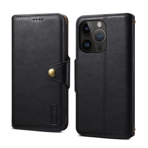 Funda para Teléfono Denior iPhone 15 Pro Cuero Estilo Billetera Textura Piel de Vaca (Negro)