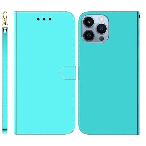 Estuche para Teléfono iPhone 15 Pro Cuero con Superficie de Espejo Imitado (Verde Menta)