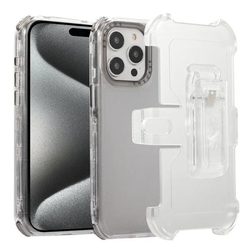 Funda para iPhone 15 Pro Frosted PC + Estuche TPU con Clip Trasero (Negro Transparente)