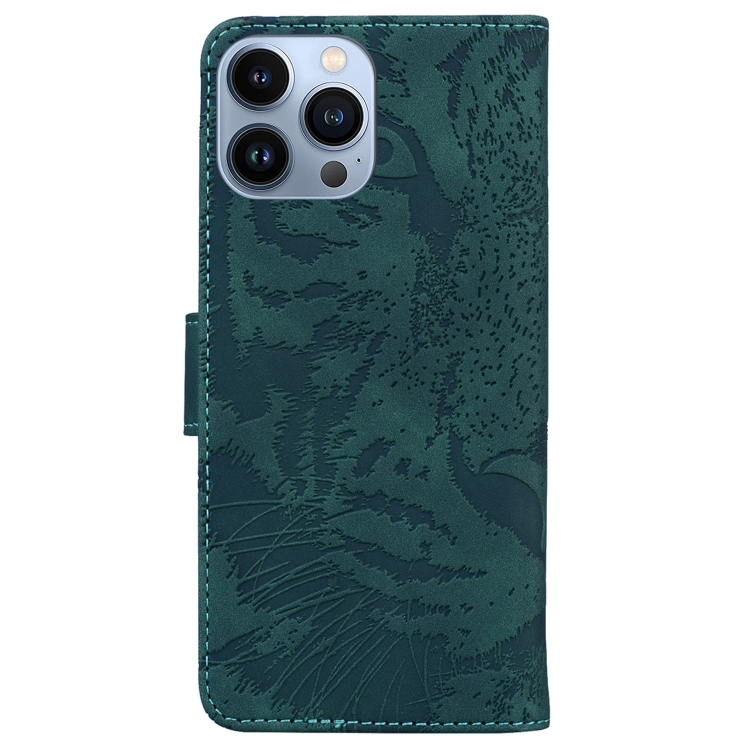 Funda de Teléfono iPhone 15 Pro Cuero Estampado Tigre En Relieve (Verde)