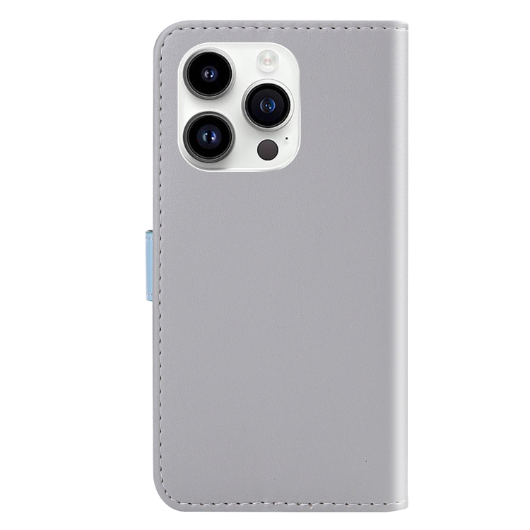 Funda para Teléfono iPhone 15 Pro Cuero con Tapa Horizontal y Costuras Tricolores (Gris)