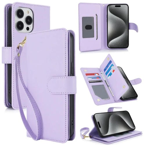 Funda para Teléfono iPhone 15 Pro Cuero RFID con Billetera MultiTarjeta (Púrpura Claro)