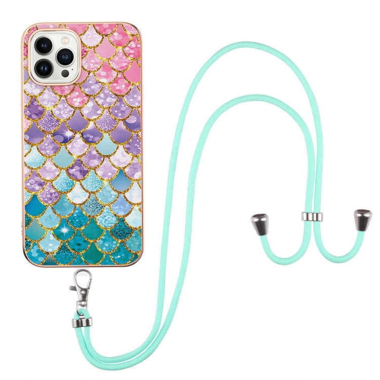 Estuche TPU para iPhone 15 Pro Galvanoplastia Patrón Imd a Prueba de Golpes con Cordón (Escamas de Colores)