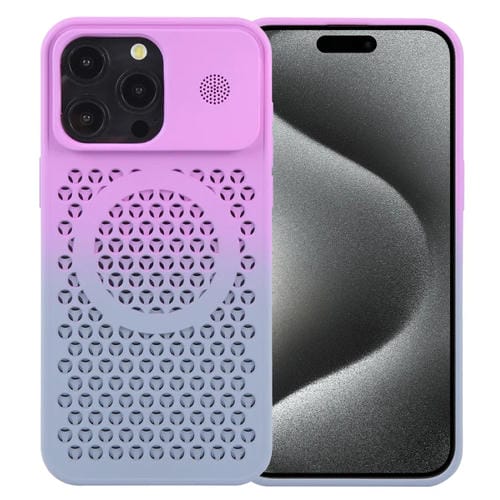 Funda para Teléfono iPhone 15 Pro Honeycomb Cooling Aromaterapia Magnética (Gris Púrpura)
