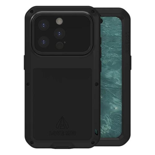 Caja para iPhone 15 Pro Love Mei a Prueba de Polvo Impermeable y Golpes de Metal (Negro)