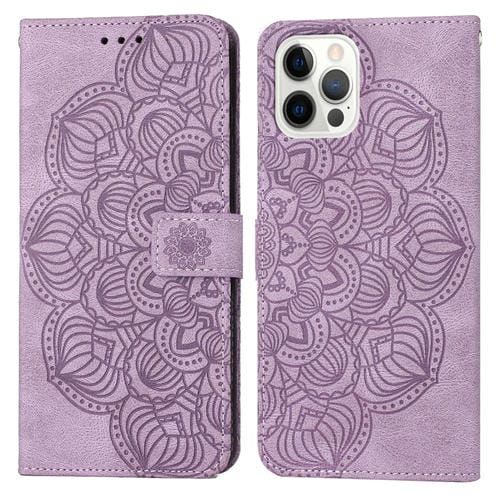 Funda de Cuero para iPhone 15 Pro Mandala con Tapa En Relieve (Púrpura)