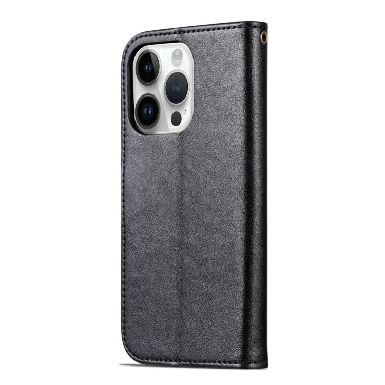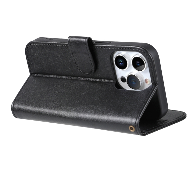 Funda para iPhone 15 Pro Max Azns Textura de Piel de Oveja Flip Cuero (Negro)