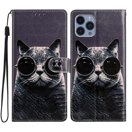 Estuche de Teléfono iPhone 15 Pro Max Cuero Dibujo Coloreado (Gafas de Sol Cat)