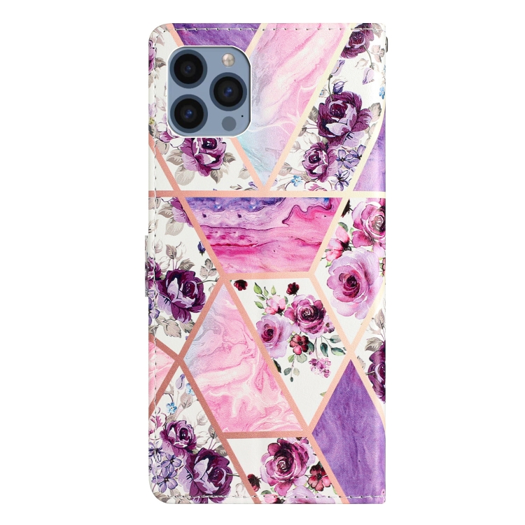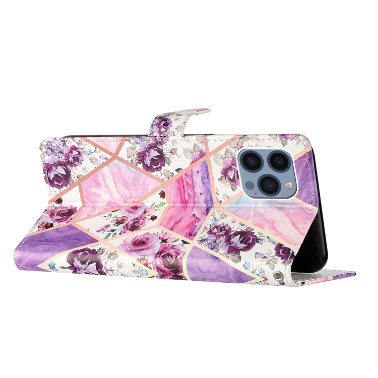 Estuche para Teléfono iPhone 15 Pro Max Cuero con Dibujo Coloreado (Mármol Púrpura)