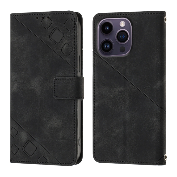 Estuche para Teléfono iPhone 15 Pro Max Cuero En Relieve con Tacto de Piel (Negro)