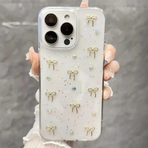 Estuche para Teléfono TPU para iPhone 15 Pro Max con Lazo Pequeño (Dorado)