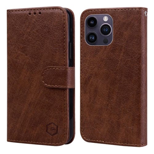 Funda para Teléfono iPhone 15 Pro Max Skin Feeling Oil Textura de Cuero Pu + TPU (Marrón)