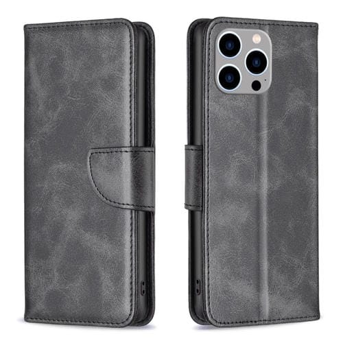 Funda para iPhone 15 Pro Max Textura Piel de Cordero Cuero con Tapa (Negro)