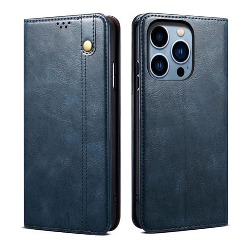 Funda para iPhone 15 Pro Oil Wax Crazy Horse Textura Cuero (Azul)