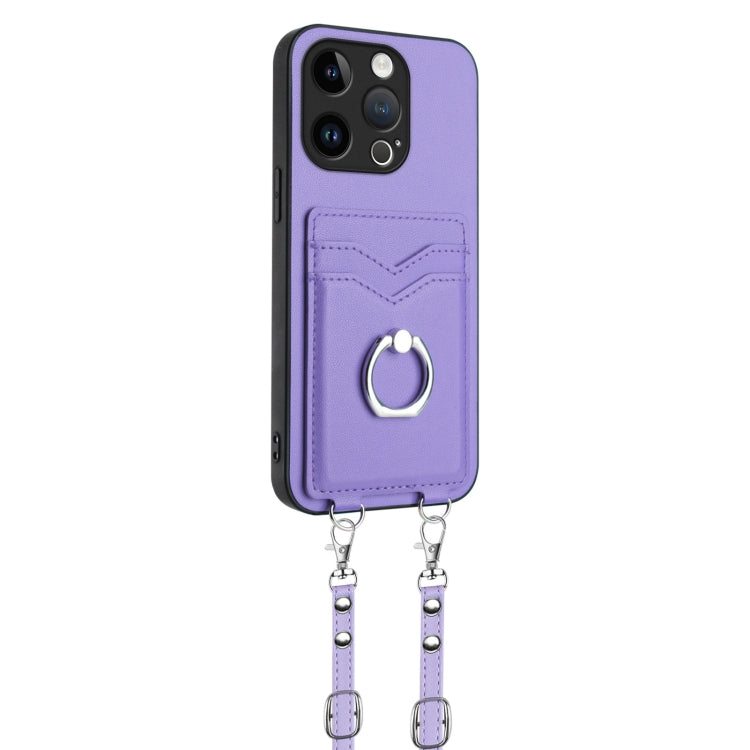 Funda para Teléfono iPhone 15 Pro R20 Soporte Tarjeta Anillo Cuerda Cruzada (Púrpura)