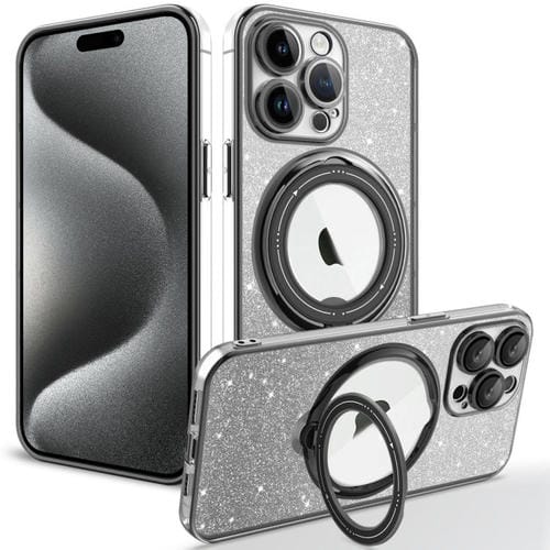 Estuche para Teléfono iPhone 15 Pro Rotación Magsafe Holder TPU con Brillo Degradado (Negro)