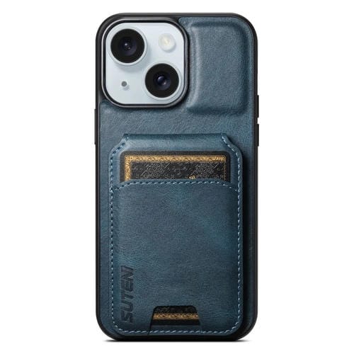 For iPhone 15 Suteni H02 Leather Phone Case with Stand and Wallet (Blue)
