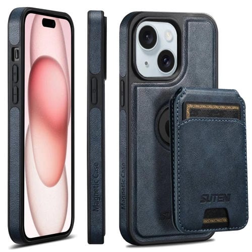 Funda para Teléfono Suteni M2 Oil Wax Magsafe para iPhone 15 con Bolsa para Tarjeta Horizontal (Azul)