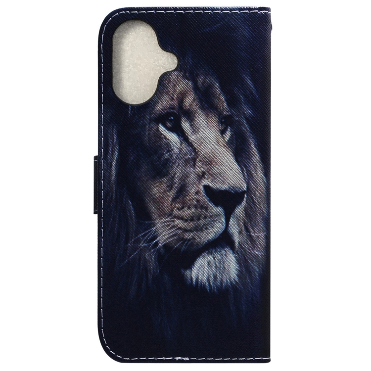 Funda de Cuero para iPhone 16/16 Plus con Tapa y Dibujo Coloreado (León)