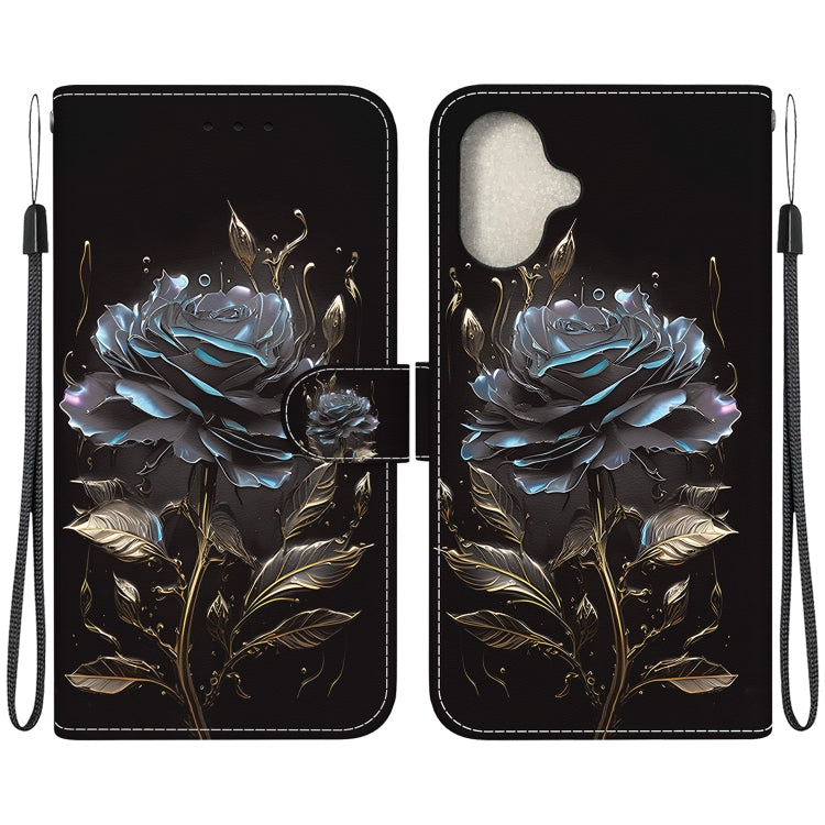 Funda de Cuero para iPhone 16 con Dibujo Coloreado y Textura de Cristal (Rosa Negra)