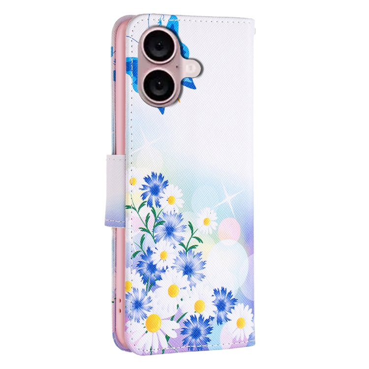 Funda de Cuero para iPhone 16 con Patrón de Dibujo de Colores (Amor de Mariposa)