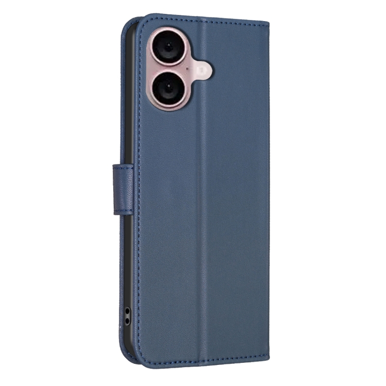 Funda de Cuero para iPhone 16 con Relieve de Cuatro Hojas (Azul)