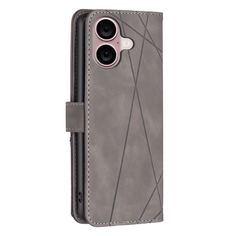 Funda para iPhone 16 Cuero Textura de Rombo Hebilla Magnética (Gris)