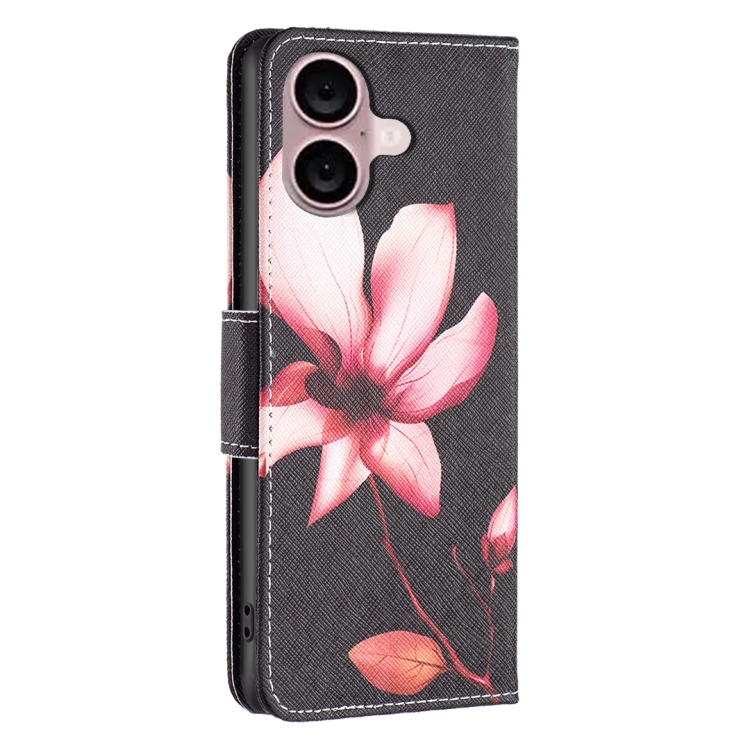 Funda de Teléfono iPhone 16 Cuero con Tapa Patrón de Dibujo de Colores (Lotus)