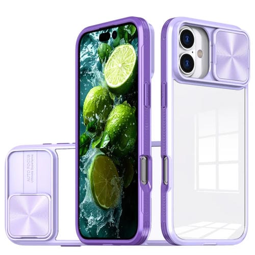 Estuche para Teléfono iPhone 16 Plus TPU Híbrido Acrílico con Escudo de Levas Deslizante (Púrpura)