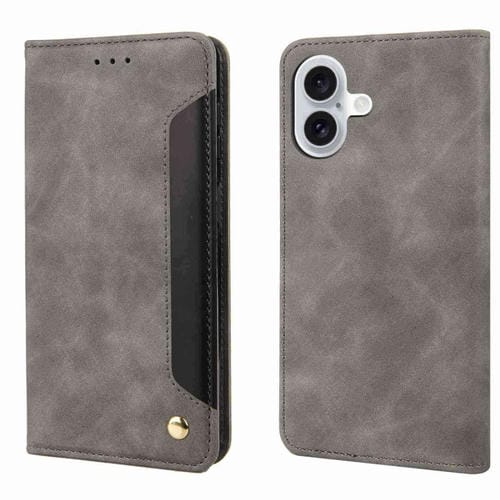 Funda para teléfono iPhone 16 Plus cuero con empalme y sensación de piel (Gris)