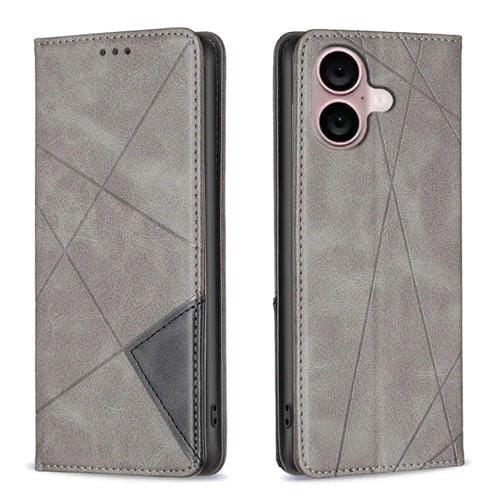 Funda para teléfono iPhone 16 Plus Cuero Magnético Textura Rombo (Gris)