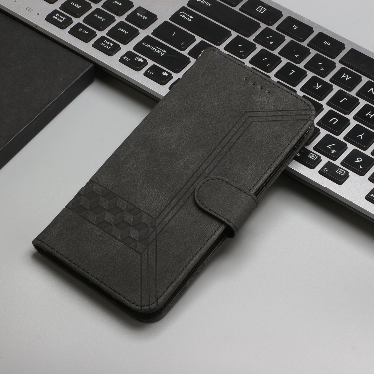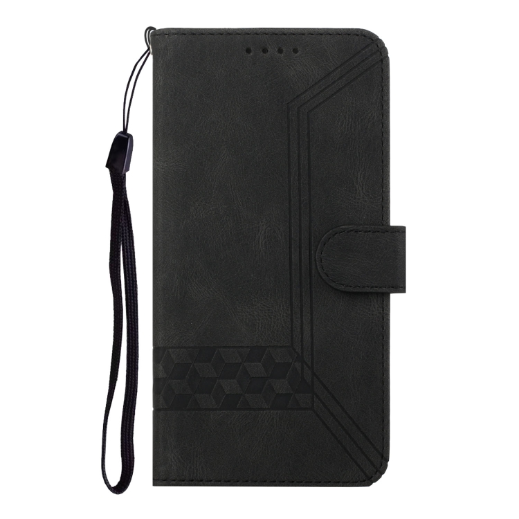 Funda para teléfono iPhone 16 Pro Cubic Skin Feel de cuero con tapa (Negro)