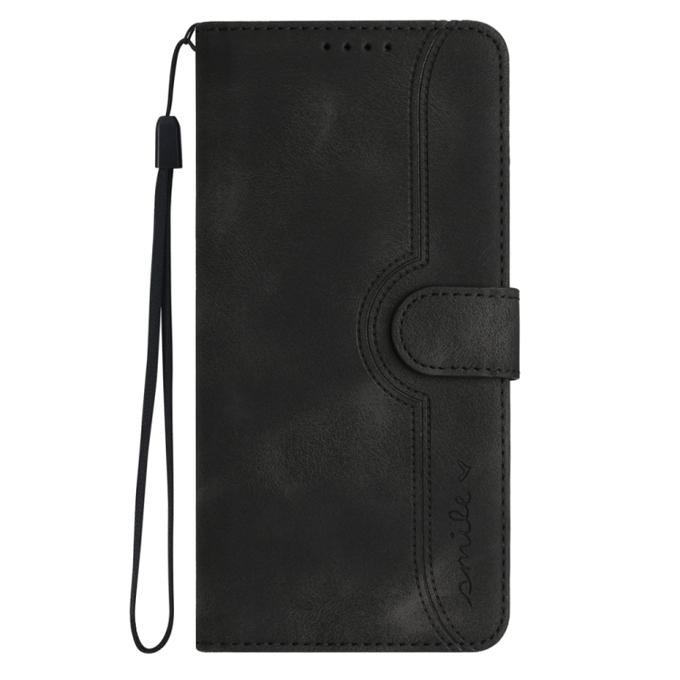 Funda para iPhone 16 Pro Cuero Sensación de Piel Patrón de Corazón (Negro)