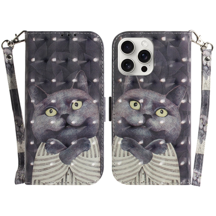 Funda de Teléfono iPhone 16 Pro Cuero con Tapa Horizontal Color 3D (Hug Cat)