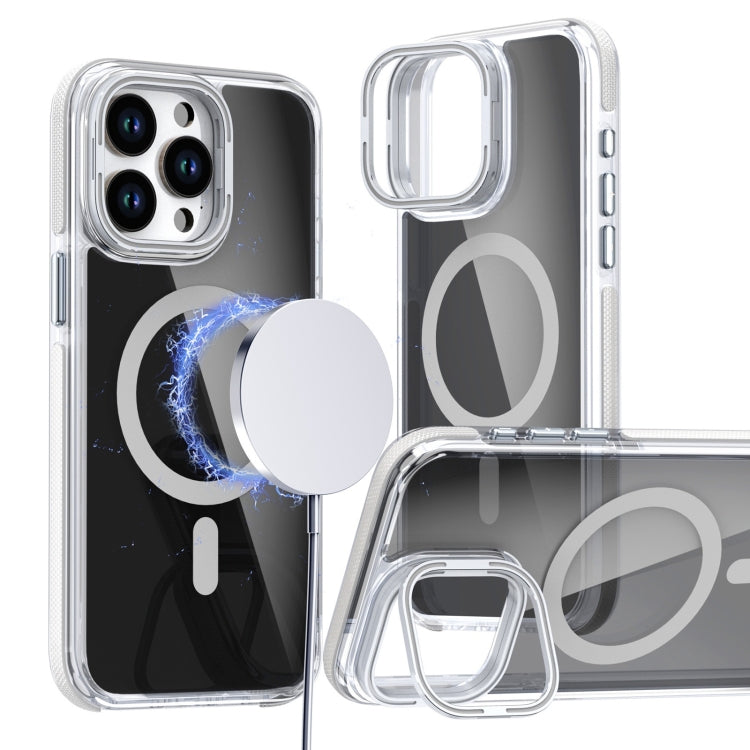 Estuche para Teléfono iPhone 16 Pro Magsafe con Soporte para Lente (Negro Transparente y Blanco)