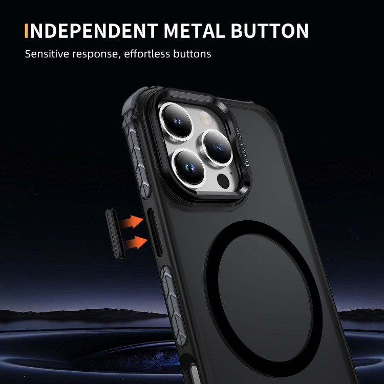 Estuche para Teléfono iPhone 16 Pro Max Rainbow Series Skin Feel con Soporte para Lente Magsafe (Negro)