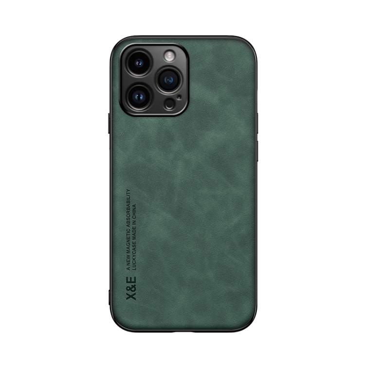Funda de teléfono para iPhone 16 Pro Max Skin Feel con parte Trasera de cuero magnético (Verde)