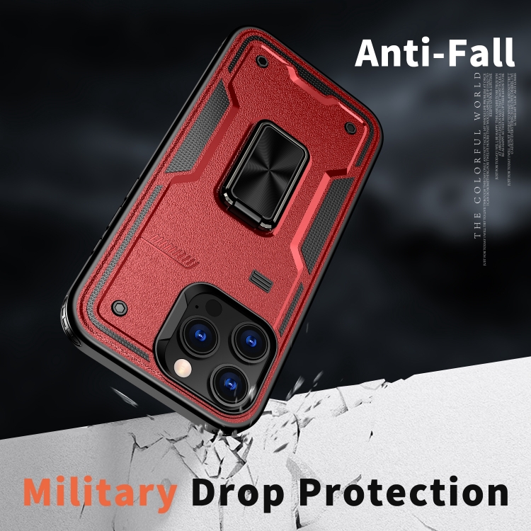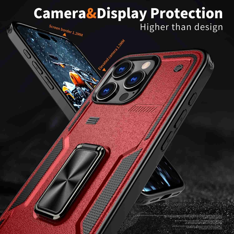 Funda de Teléfono híbrida para iPhone 16 Ring Holder PC TPU (Rojo)