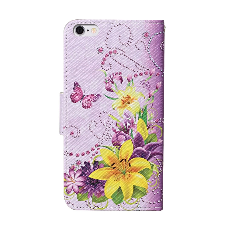 Estuche de Cuero para iPhone 6 / 6S con Tapa Horizontal, Soporte, Ranuras para Tarjetas y Billetera (Mariposa de Flor Amarilla)