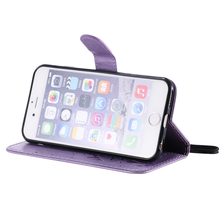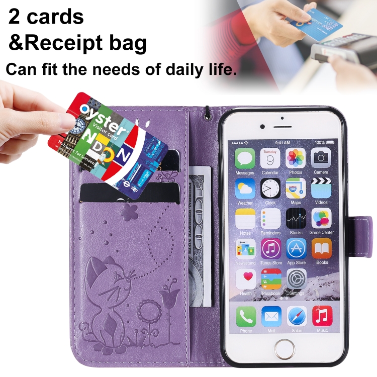 Funda para iPhone 6 Cat Bee Cuero con Tapa Horizontal Soporte Ranuras Tarjetas Billetera (Púrpura)