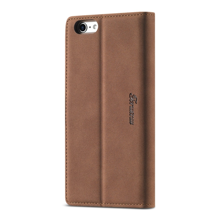 Funda de cuero FoRWenw F1 Series para iPhone 6 Plus y 6S Plus con tapa horizontal, soporte, ranuras para tarjetas y marco de fotos (Marrón)